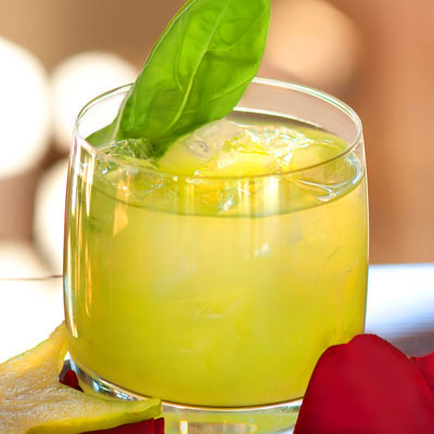 dr max ingredients and ice. Shake vigorously and strain into a glass filled with ice. Garnish with a basil leaf.